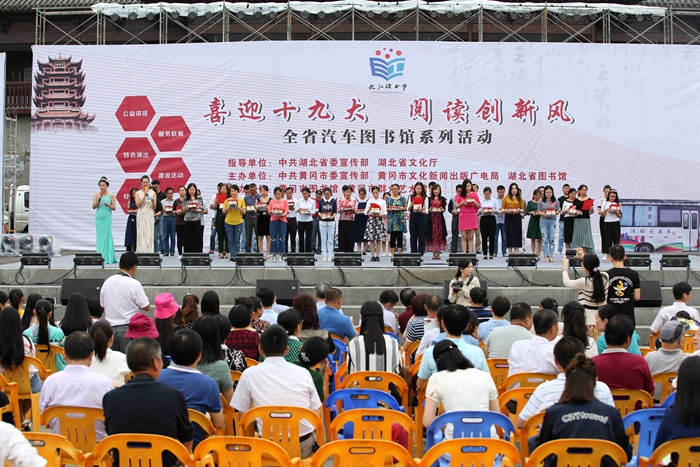 为总结、展示、交流全省汽车图书馆近几年服务社会的成果和经验,9月5日,由黄冈市委宣传部、黄冈市文广局、湖北省图书馆主办,黄冈市图书馆、黄冈市群众艺术馆、黄州区图书馆承办的以“ 喜迎十九大 阅读创新风”为主题的全省汽车图书馆系列活动在黄冈市遗爱湖东坡广场隆重举行,来自全省8个地、市、州的29家公共图书馆参加此次系列活动。